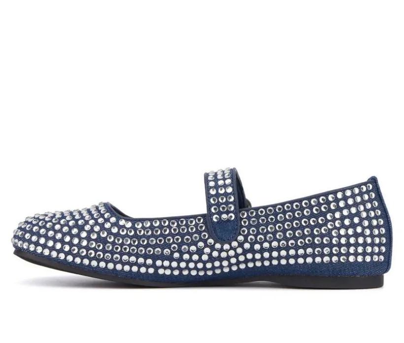 The Dawn offers a playful twist on the classic ballet flat. Adorned with dazzling rhinestones and equipped with a stylish functional strap, this shoe is poised to become your go-to statement piece of the season, adding a touch of flair to any ensemble.