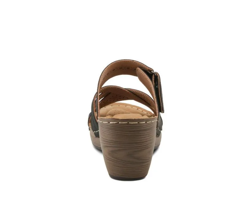 Bring comfort and charm together with this easygoing sandal designed for everyday wear. The open-toe slip-on features wide cross straps with subtle laser-cut accents, offering breathable style and a soft feel across the foot. A contoured footbed and mid-height wedge heel provide support and a flattering lift, making it a go-to option for casual days out. With its wood-look sole and cushioned design, it’s both stylish and supportive from morning to night.