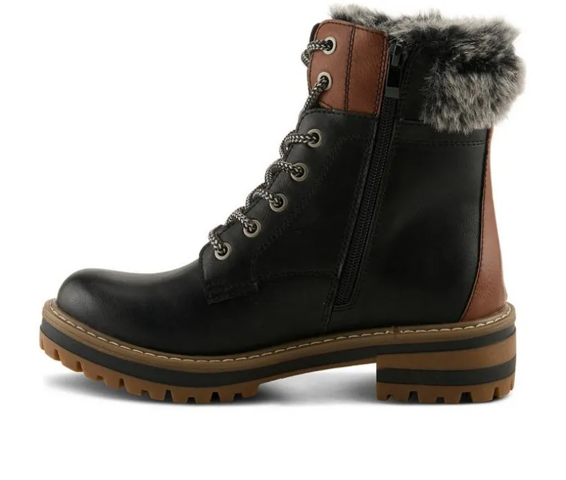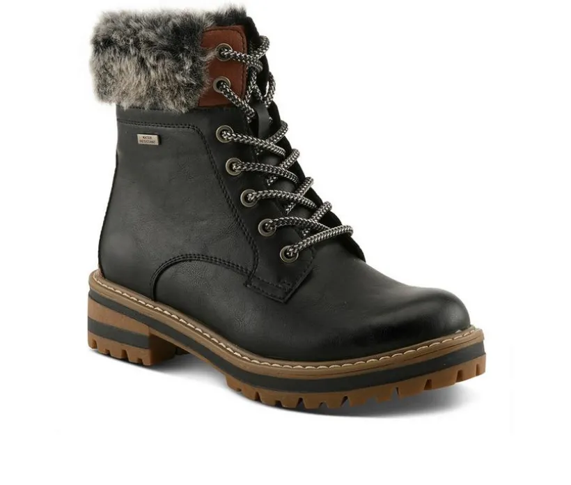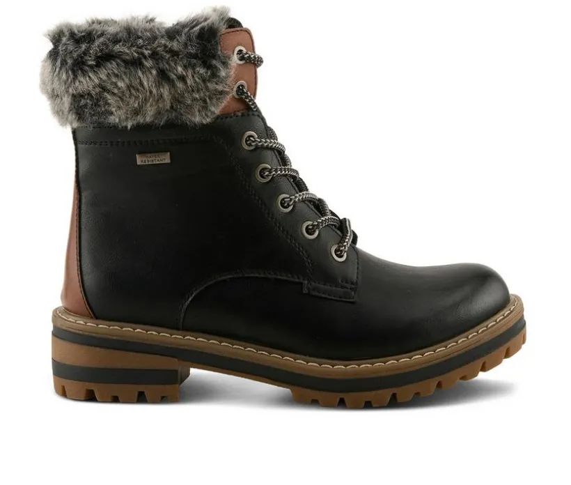 Designed for unpredictable weather, this boot offers both style and protection. The water-resistant upper helps keep feet dry, while faux fur and sherpa lining add insulation and comfort. A lace-up front and inside zipper make adjustments simple, and the block heel adds just the right height.
