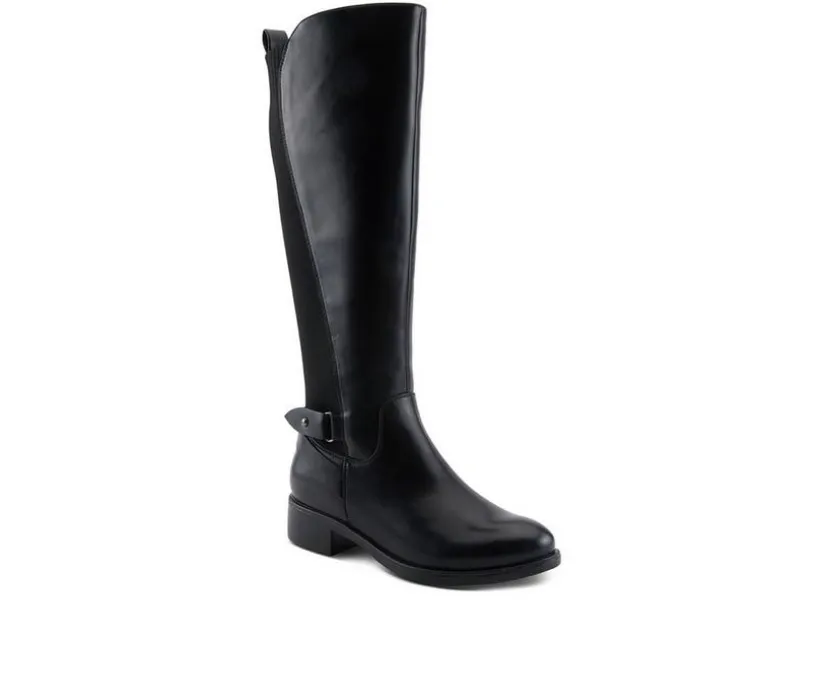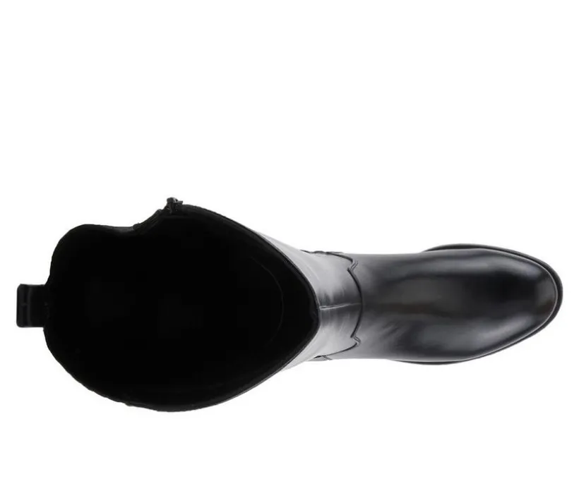 A tall, equestrian-inspired boot with clean lines and everyday versatility. The stretch back panel creates a contoured fit, while a subtle buckle detail adds polish. An inside zipper keeps entry simple, and the low 1 1/2″ lift stays comfortable from day to night. A wardrobe foundation for refined looks.