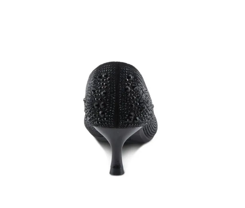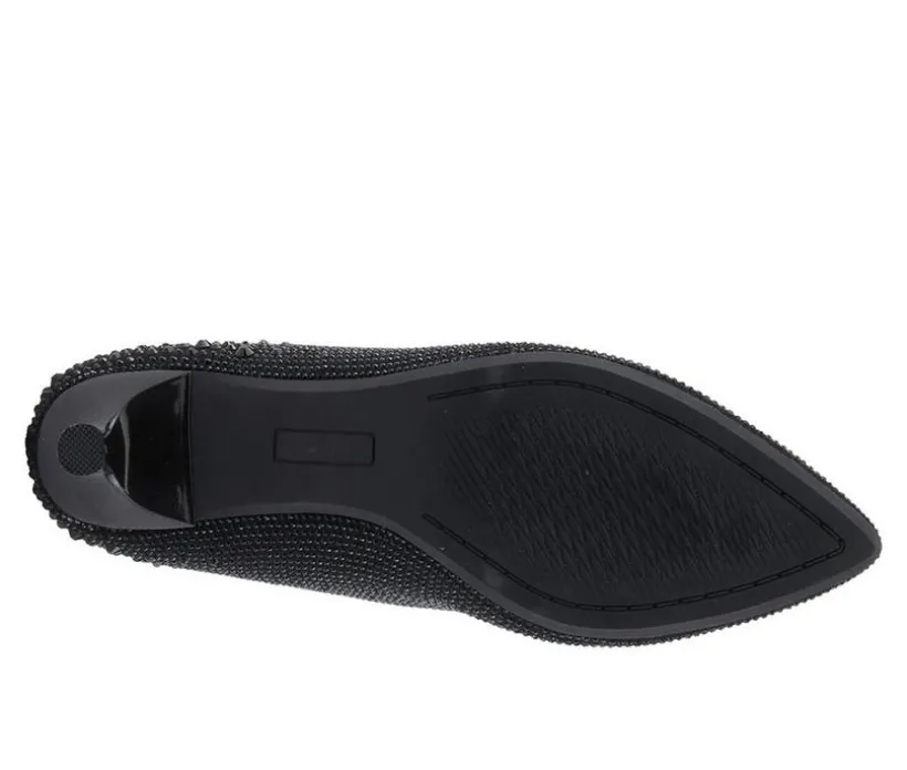 Delicate and refined, this sparkling kitten heel adds the perfect finishing touch to any formal ensemble. The glittery synthetic upper is encrusted with rhinestones for an eye-catching shimmer that shines under the lights. Designed with a low heel and classic closed toe, this silhouette offers both elegance and comfort for long celebrations. Slip into this graceful style for weddings, parties, or any event that calls for a little extra glamour.