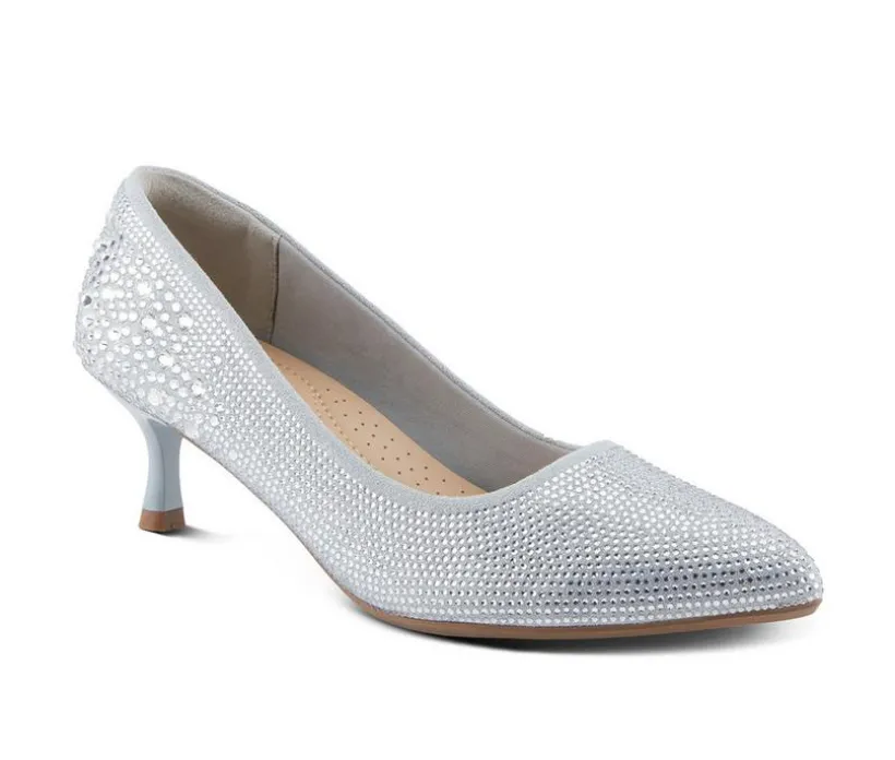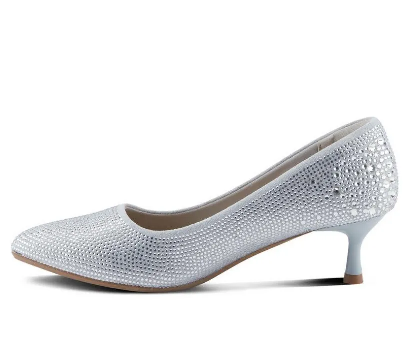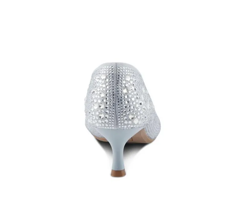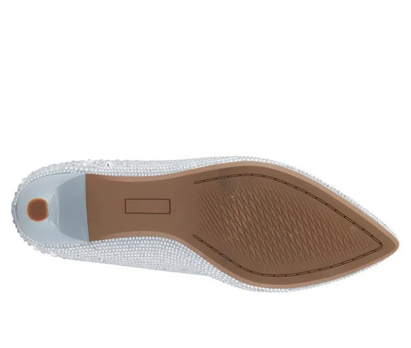 Delicate and refined, this sparkling kitten heel adds the perfect finishing touch to any formal ensemble. The glittery synthetic upper is encrusted with rhinestones for an eye-catching shimmer that shines under the lights. Designed with a low heel and classic closed toe, this silhouette offers both elegance and comfort for long celebrations. Slip into this graceful style for weddings, parties, or any event that calls for a little extra glamour.