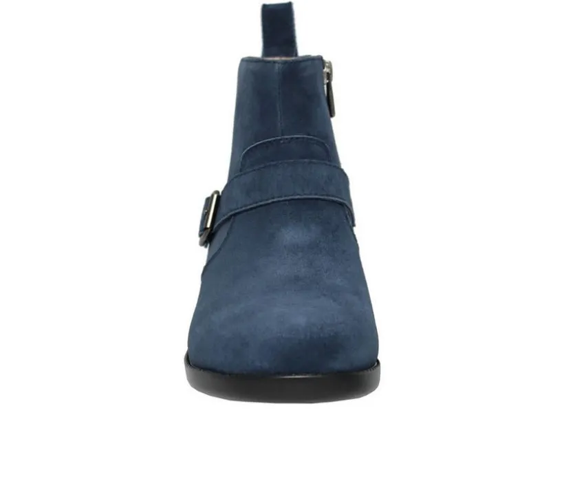These ankle boots bring a touch of modern flair to a timeless silhouette. Crafted with a soft upper, they feature a stylish buckle strap detail across the side for a polished finish. A side zip allows for easy on and off, while the round toe and low stacked heel make them versatile for everyday wear. Designed with comfort in mind, they’re perfect for pairing with jeans, skirts, or casual dresses.