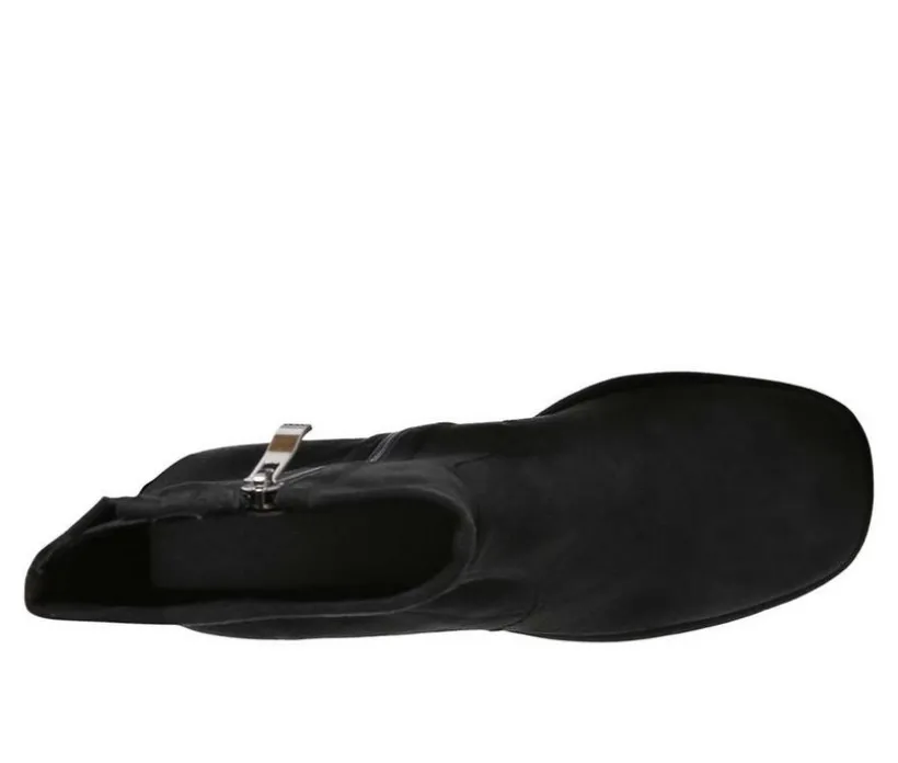 Mid High block heeled comfortable and plush ankle boot, crafted in stretchable fine suede is class apart. Comes in trendy square cut toe and block heels, this pair is easy to wear with side zipper opening.