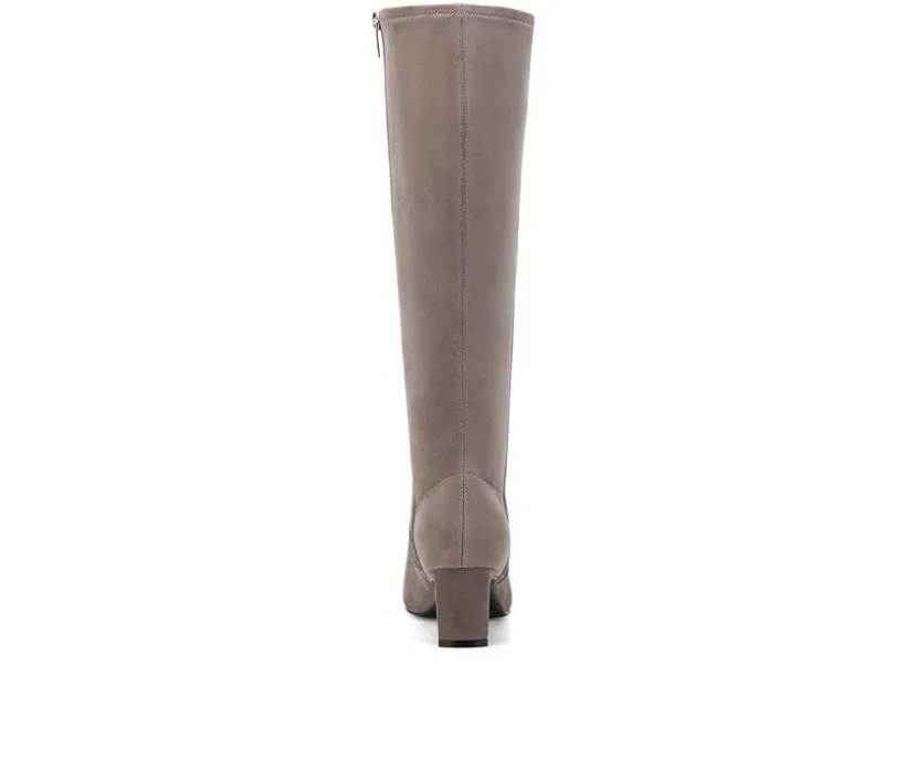 Step out in timeless sophistication with these chic knee-high boots designed for all-day confidence and comfort. The soft synthetic upper creates a smooth, refined silhouette, while the pointed toe and mid-height heel offer a touch of elegance. A full side zipper ensures easy wear, and the cushioned insole provides lasting support. Perfect for pairing with dresses, skirts, or slim pants for a polished finish.