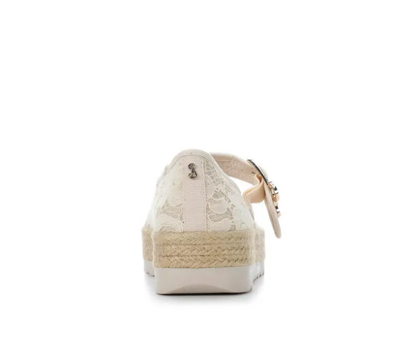 Step into effortless elegance with the Women’s Sam & Libby Isla Platforms! Chic yet soft, these sandals feature a stunning embroidered upper and a gleaming gold buckle with Sam & Libby branding for a touch of luxe. The espadrille platform radiates beachy, summery vibes, making them your go-to for everything from brunch dates to boardwalk strolls.