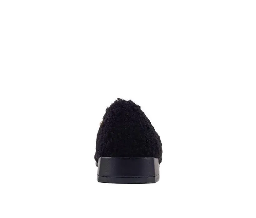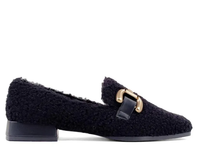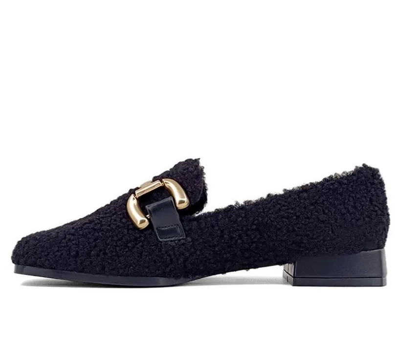 Experience unmatched comfort and style with our THERESE loafers. Crafted from high-quality faux leather and sherpa, these loafers feature a soft, textured finish, a chic metal buckle, and a sturdy low-block heel. Perfect for adding a cozy, elegant touch to any outfit, they’re designed for all-day comfort.