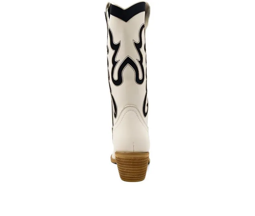 Step into style with our faux leather cowboy boots! Featuring bold, intricate black embroidery on a crisp bone-white background, these boots are a true fashion statement. The stacked heel offers just the right lift for all-day comfort. Perfect for any occasion. Slip them on and step out with confidence!