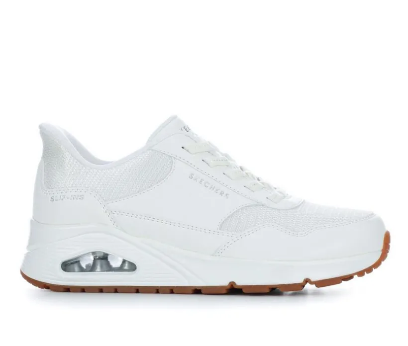 An iconic Skechers favorite is reimagined with effortless comfort in Skechers Street™ Hands Free Slip-ins®: Uno – Easy-Air. Designed with our exclusive Heel Pillow™, this fashion sneaker features a synthetic upper with stretch laces, a cushioned Skechers Air-Cooled Memory Foam® insole, and a visible Skech-Air® airbag midsole.