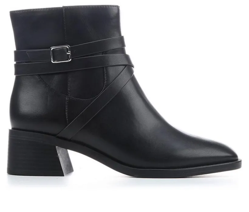 Modern edge meets versatile wear in the Women’s Soda Spruce-S Booties. Designed with a faux leather upper and sleek ankle-height silhouette, these booties feature a side zipper for easy on and off. A pointed toe and stacked block heel add a chic finish, making them perfect for pairing with jeans, skirts, or dresses. With a cushioned insole and durable outsole, they balance style and comfort for everyday wear.