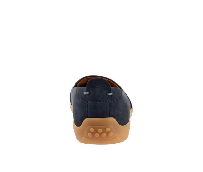 Playful asymmetry and a casual look influences the Deva, a no fuss, slip on style with elastic goring. A removable, cushioned footbed with built in arch support allows comfort with every step. Soft, supple leathers refine the Deva flat that is a year round staple.