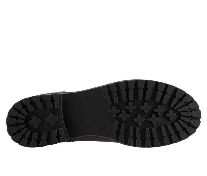 Rugged style meets everyday comfort in these classic mid-calf harness boots. Crafted with a durable synthetic upper and accented by metal ring hardware, they deliver a timeless, moto-inspired look. The sturdy block heel and lug outsole provide reliable traction, while the cushioned insole ensures comfort throughout the day. Easy pull tabs make them simple to slip on, perfect for casual or outdoor wear.