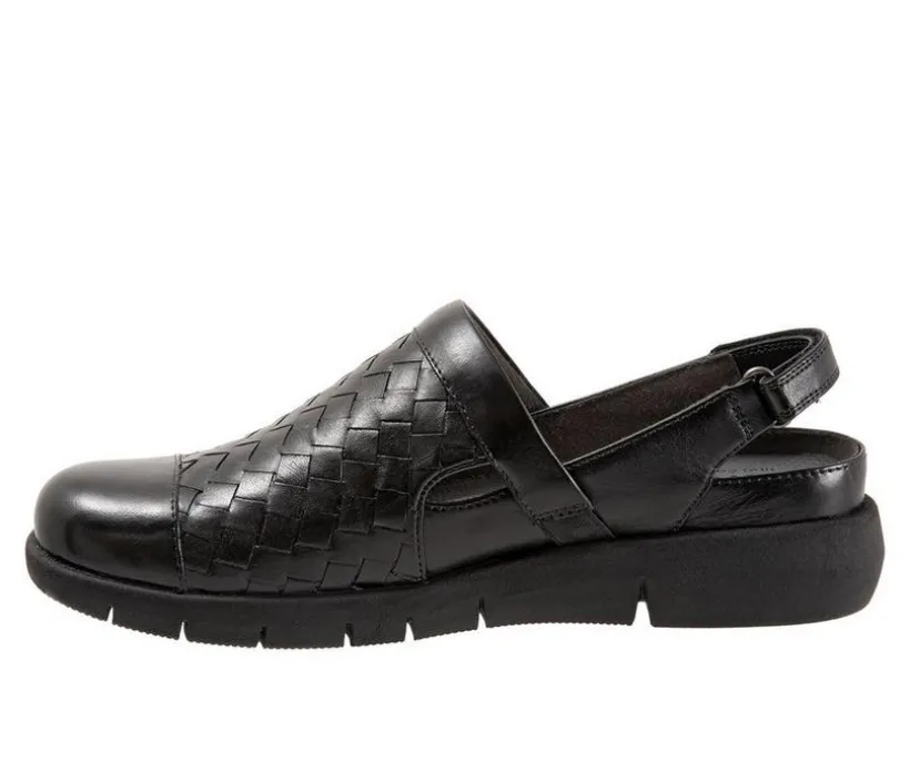 A full toe coverage fashionable cut out sling, the Salina Woven features an adjustable back strap and elastic goring on both sides. Woven leather upper provides an extra bit of style and comfort. NOTE: Colors Black, Rust and Stone feature a new cushioned removable footbed with arch support.