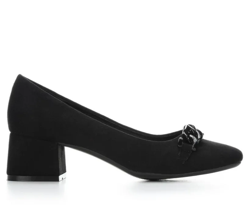The Women’s Solanz Jackie Pump delivers timeless sophistication with a modern touch. Featuring a low block heel and sleek chain accent, this versatile pump combines comfort and style for workdays or special occasions.