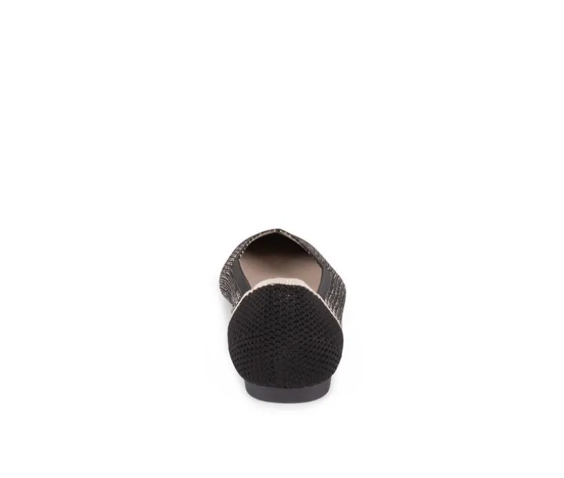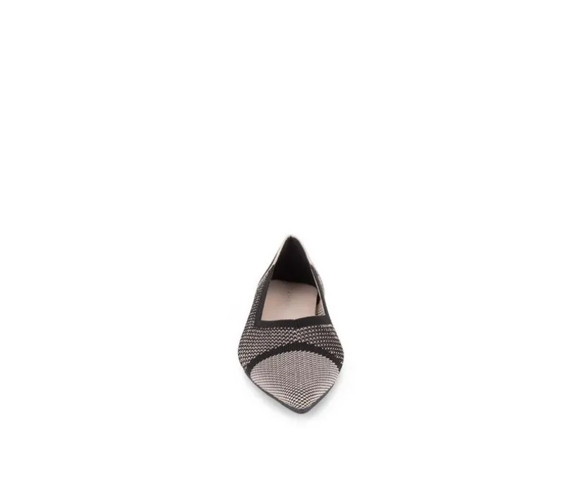 This pointy toe flat delivers timeless elegance with a breathable knit upper styled in a two-toned design. A sleek cap toe brings polished detail, while the slip-on construction makes them effortlessly wearable. Lightweight and versatile, they balance chic appeal with everyday ease.