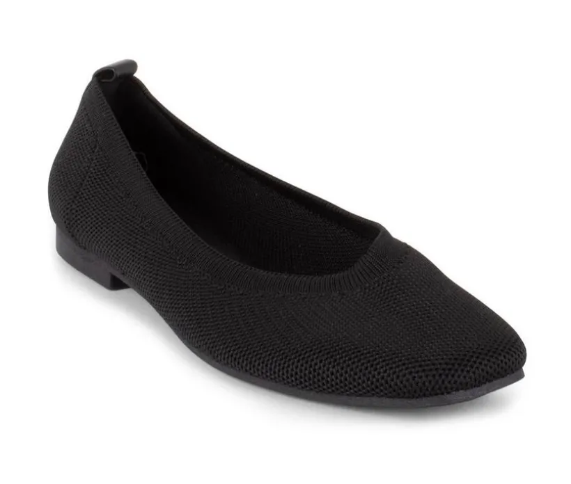 Breathable Polyester Knit Flats with a modified square toe, a flexible outsole, & a cushioned insole for added comfort.
