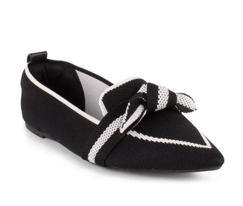 Breathable Polyester Knit Loafers with contrast trim details, pointed toe & a tied bow detail.