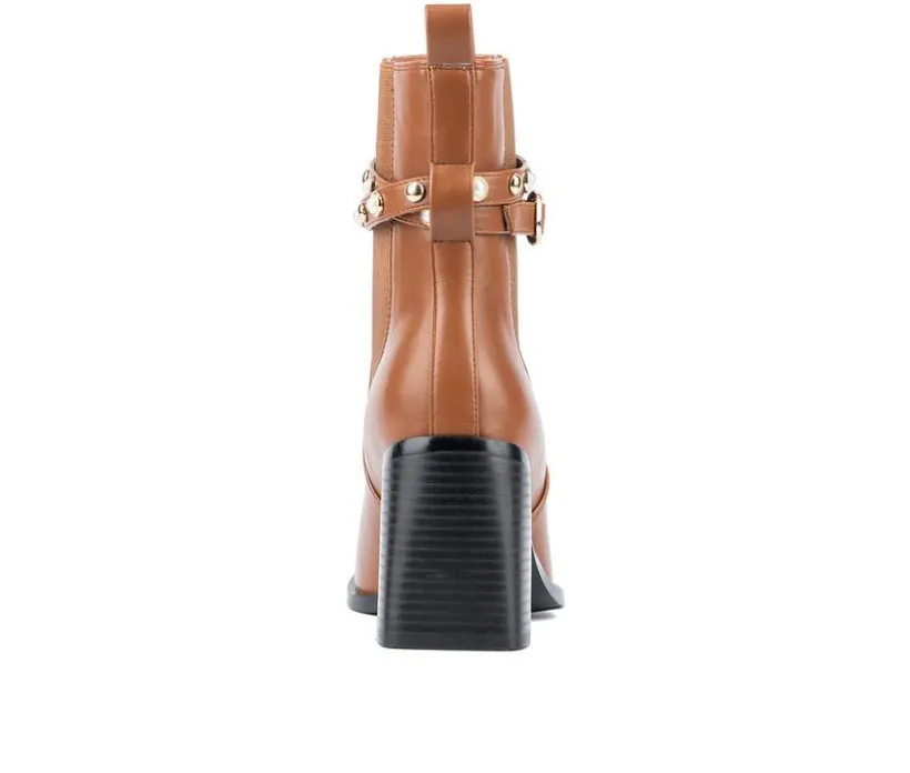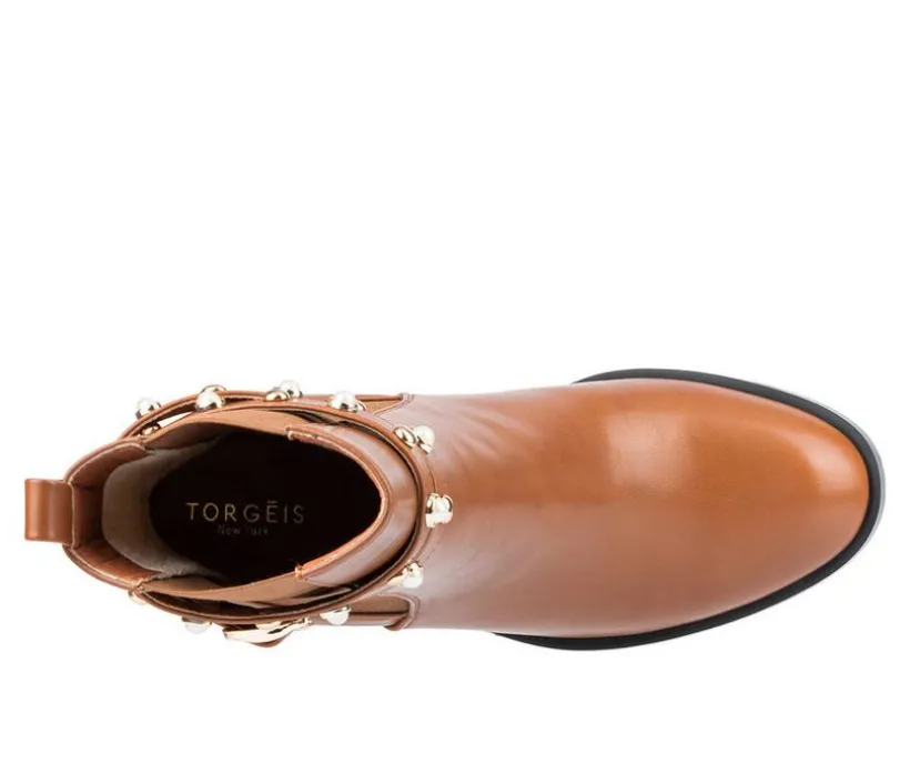 Take your look to the next level with these updated Chelsea booties. The dual elastic gores on the sides, chunky heel and round toe provide and easy and comfortable fit, while the pearl ornaments and dome studs on the straps lend an air of luxury.