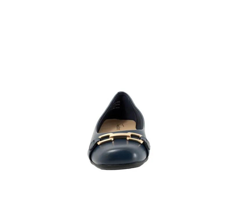 The Sadie flat adds a touch of class with a classy tailored buckle detail. The removable footbed is cushioned and has arch support and the long-wearing sole is based from a Trotters best seller.