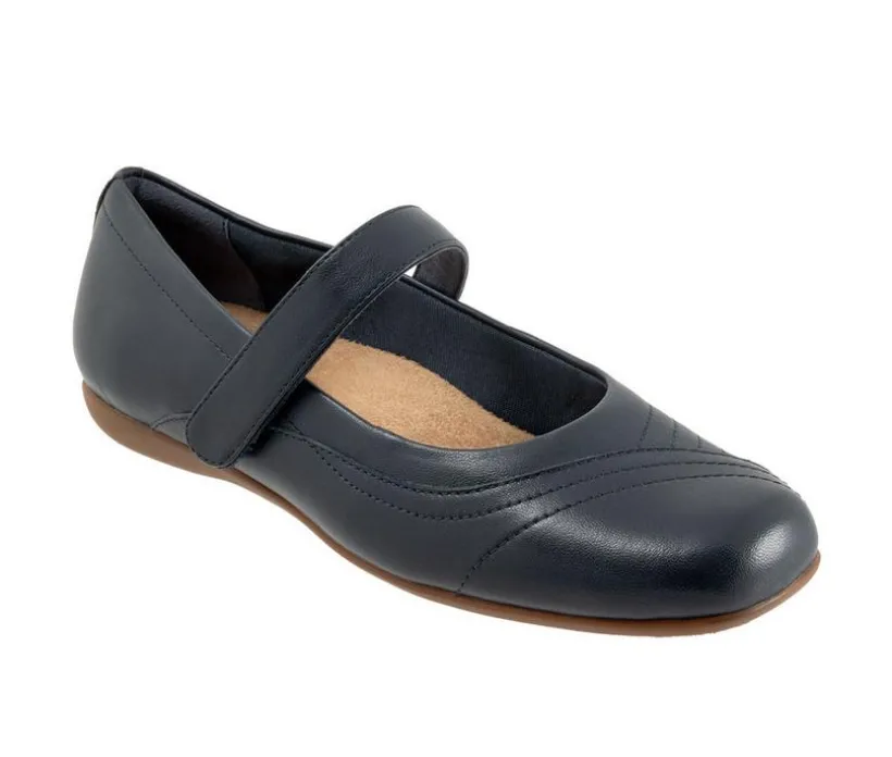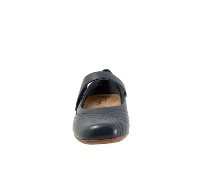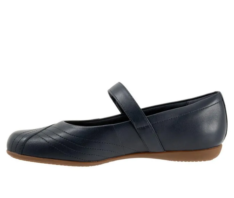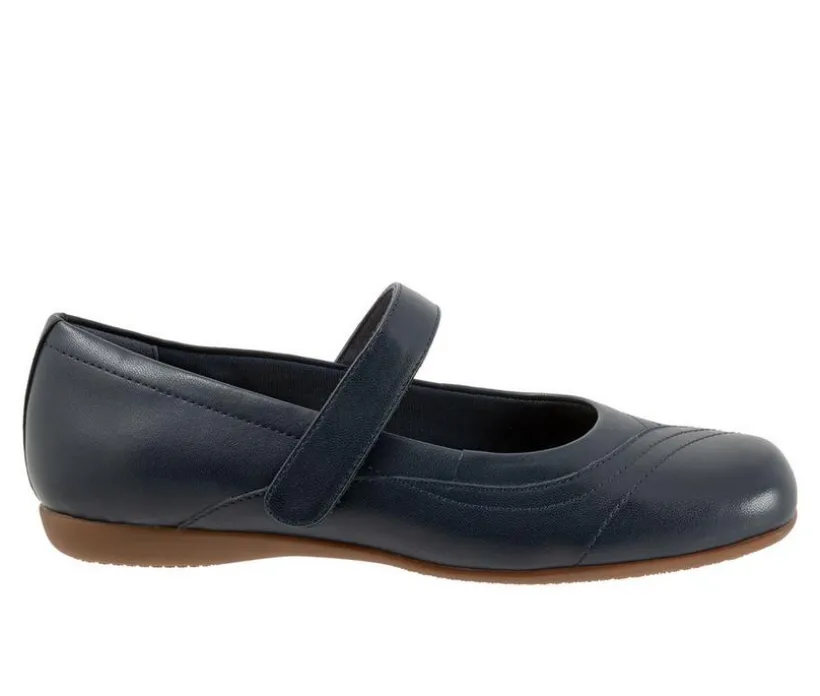 Wavy lines of stitching and overlapping leather give the Sherese maryjane flat a sense of whimsy. The removable footbed is cushioned and has arch support and the long-wearing sole is a Trotters best seller.