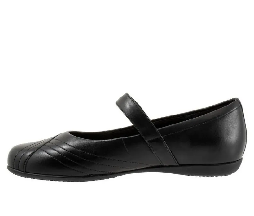 Wavy lines of stitching and overlapping leather give the Sherese maryjane flat a sense of whimsy. The removable footbed is cushioned and has arch support and the long-wearing sole is a Trotters best seller.