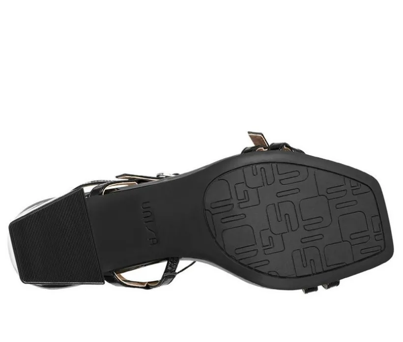 The Unisa Laider sandal delivers sleek sophistication with a minimalist silhouette and a bold block heel. Designed with slender patent straps and adjustable buckles, it offers both a secure fit and a polished finish. A cushioned footbed enhances comfort, while the flared heel provides stylish stability. Perfect for dressy occasions or nights out, it’s a versatile sandal that pairs effortlessly with modern looks.