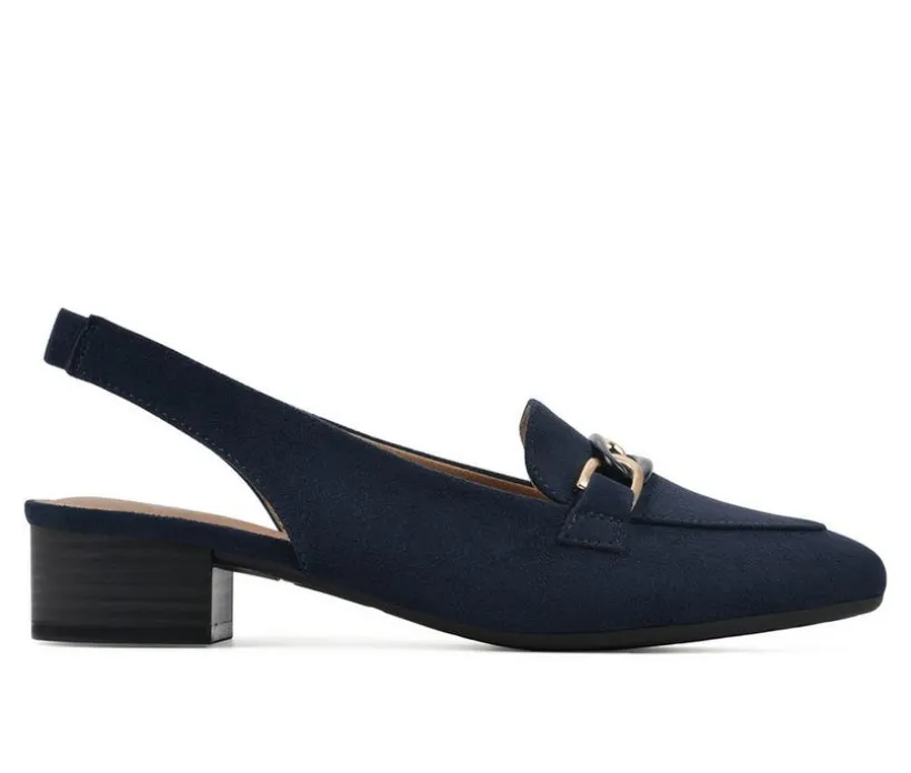 Business in the front and party in the back! The Boreal loafer by White Mountain Shoes has the best of both worlds. This heeled loafer features an almond toe, small metal keeper for a professional look, as well as a casual sling back strap for all day comfort.