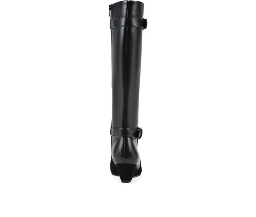 This tall wedge boot fuses streamlined style with everyday wearability. Featuring a full inside zipper and a supportive wedge heel, it elongates the leg while delivering stability and comfort. With its cushioned insole and polished finish, it’s a wardrobe staple that balances height and sophistication.