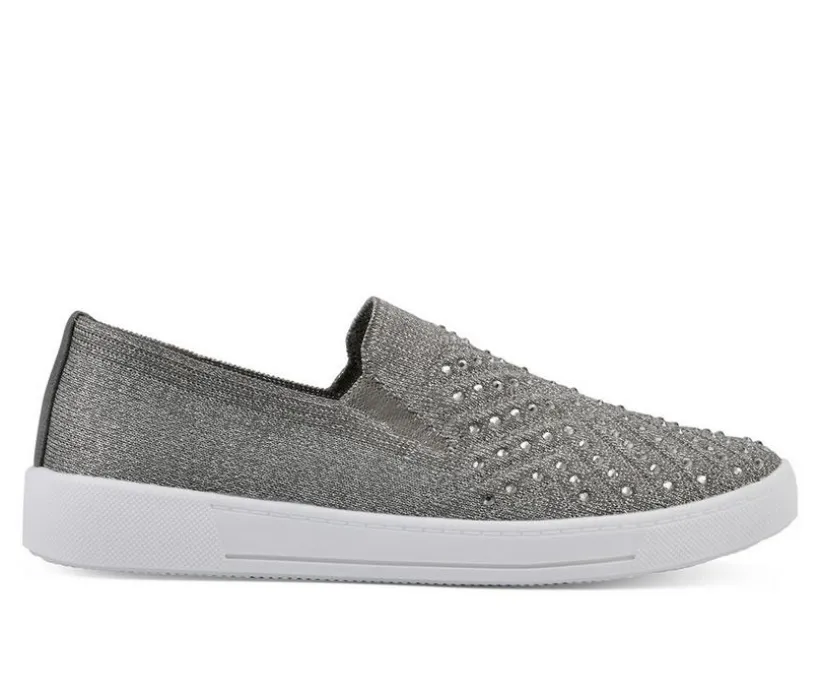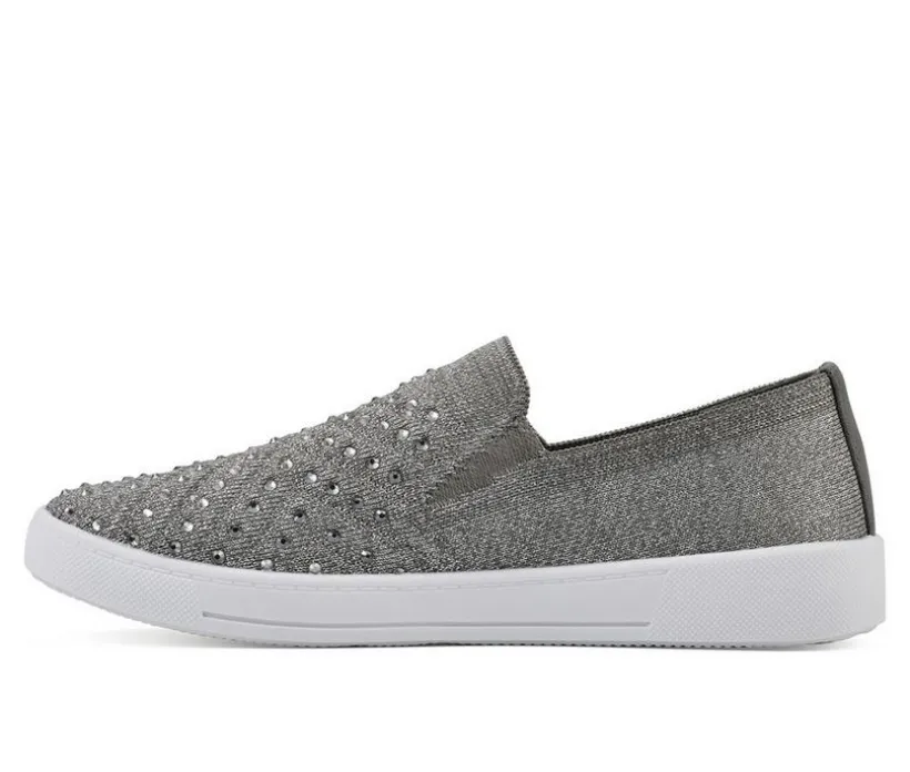The women’s lightweight knit Upbring slip-on sneaker from White Mountain Shoes is the perfect combination of dazzle and comfort. With rhinestone embellishments and woven design this sneaker will elevate any outfit.