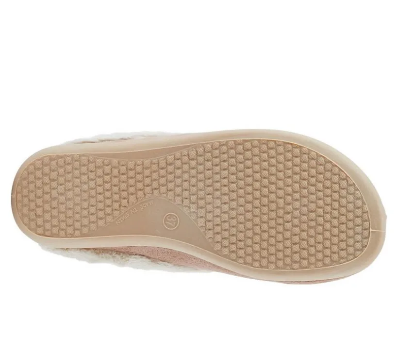 AUSHANA delivers lounge-first comfort with a plush textile upper and micro-suede interior that feels gentle and warm. The slide-on design is effortless, and the removable insole helps tailor the fit. A supportive PVC outsole handles relaxed days and quick errands. Low lift and rounded toe keep it casual and comfortable.
