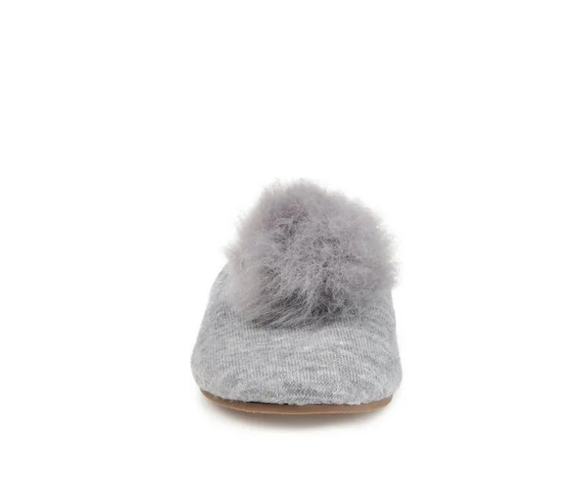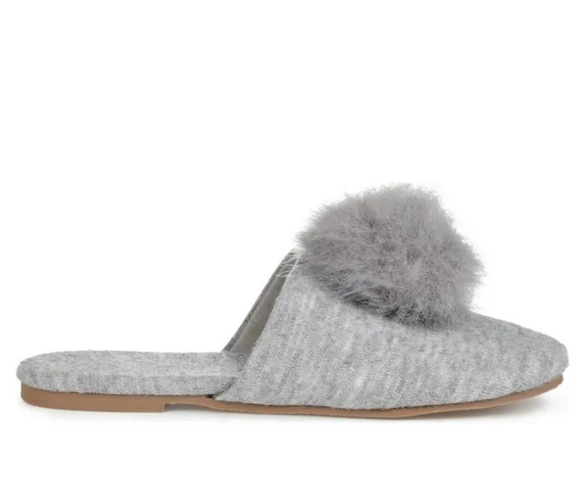 A pompom accent lends a playful look to this backless slipper. The Nightfall by Journee Collection is a warm fabric slipper with a round-toe silhouette. This lightweight design is finished with a durable outsole and an oh-so-soft cushioned footbed.