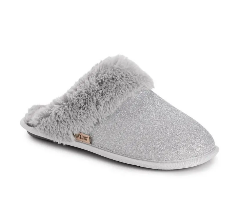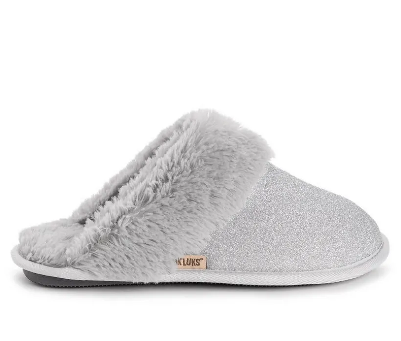 Get ready to sparkle and shine with our MUK LUKS® Angled Sparkle Scuff! Slip into pure comfort with its warm, cozy faux fur lining, while the beautiful glistening sparkly design adds a touch of glam to your loungewear game. Guaranteed to give your day that extra sparkle, these slippers are a must-have for anyone who loves a little fun in their footwear! So why wait? Treat your feet to some sparkle today!