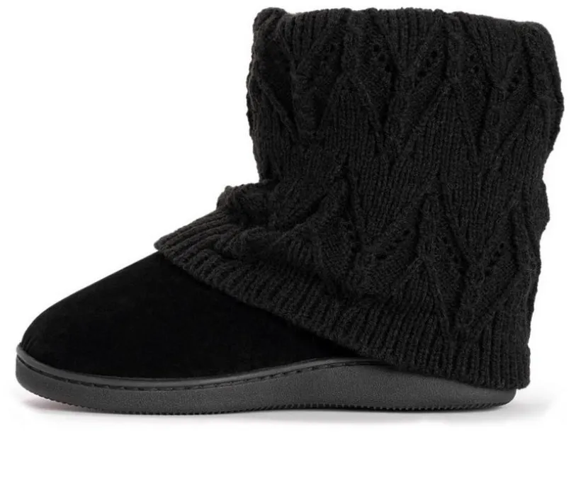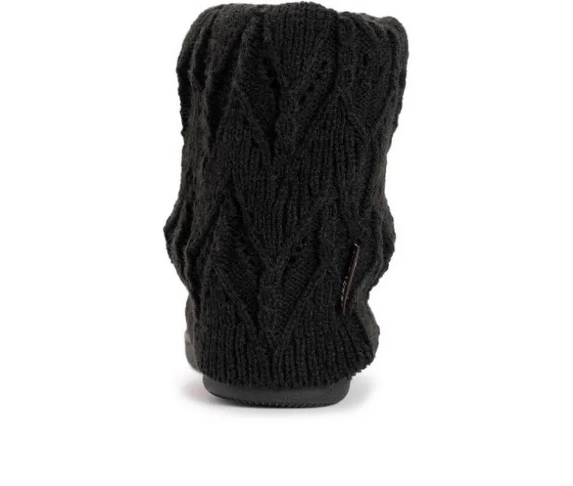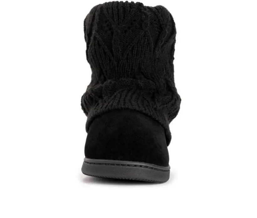 Slip into these cozy knit MUK LUKS® Raquel Slippers when temps start to drop. These mid-height slipper booties will warm your legs and treat your feet with comfortable foam insoles and durable indoor/outdoor sole. Wipe with damp cloth, do not bleach, lay flat to dry. Imported. Indoor/Outdoor TPR Solen-100% Polyester Insole. 100% Acrylic Upper. 100% Polyester Faux Fur Lining. Foam Insole. Multiple Color Options. US Women’s whole sizes S (5-6), M (7-8), L (9-10), XL (11-12).