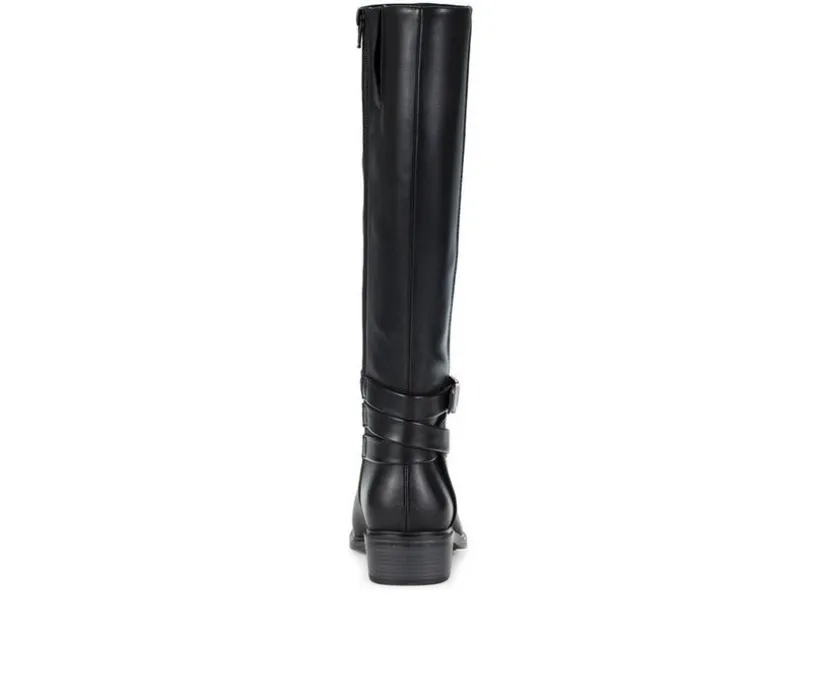 Bring fashion and function together with this versatile tall boot that’s perfect for everything from cool-weather commutes to casual weekends. Crafted with a smooth synthetic upper and subtle stitching details, it delivers a polished look with everyday comfort. A decorative side buckle adds a hint of rugged flair, while the inside zipper allows for quick on-and-off. Finished with a low block heel and textured outsole, this boot offers both support and style for all-day wear.