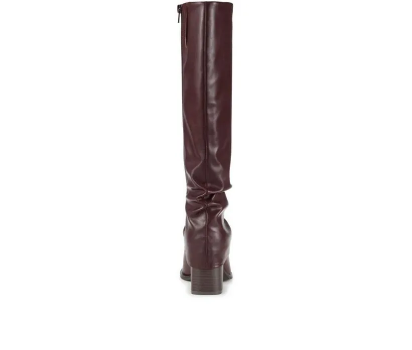 Elevate your seasonal style with this tall boot designed to turn heads and keep you comfortable. Featuring a slouched synthetic upper and a sleek block heel, it delivers a bold yet relaxed silhouette perfect for dressing up or down. A full-length inside zipper makes for easy on-and-off, while the cushioned insole ensures comfort from day to night. Whether paired with leggings or layered under a skirt, this boot brings confidence to every outfit.