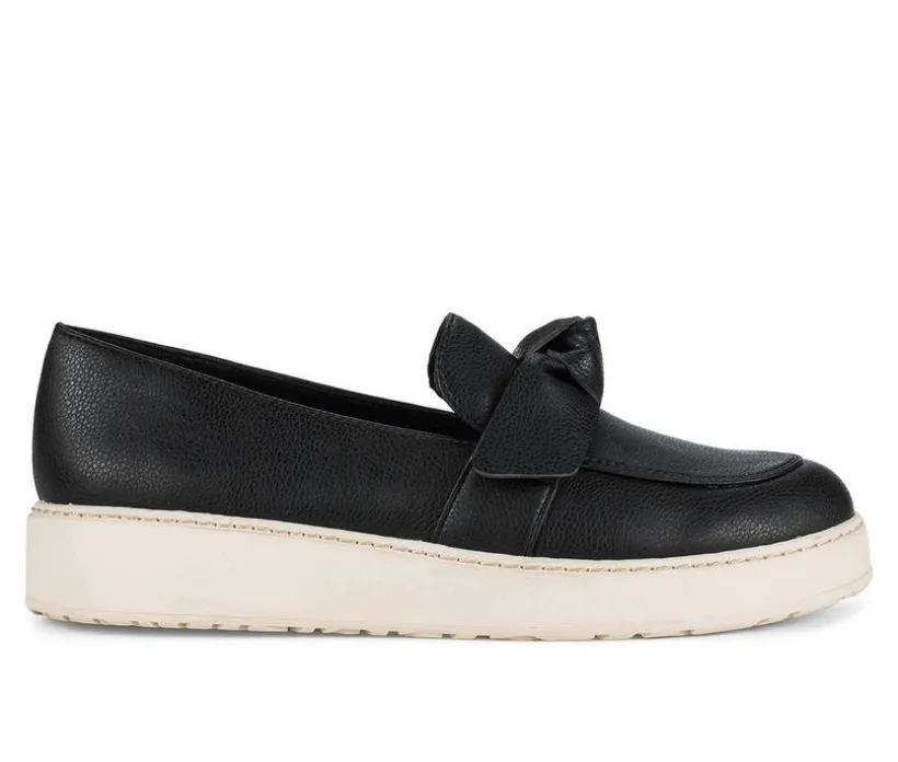 Sleek, simple, and effortlessly stylish, this casual moc-toe slip on is the ideal go-to for polished comfort. Featuring a soft synthetic upper with a charming knotted strap detail, it delivers just the right mix of ease and elegance. The cushioned insole provides reliable support, while the lightweight platform sole offers a subtle lift for everyday wear. Designed for versatile styling, this shoe transitions seamlessly from weekday errands to weekend lounging.