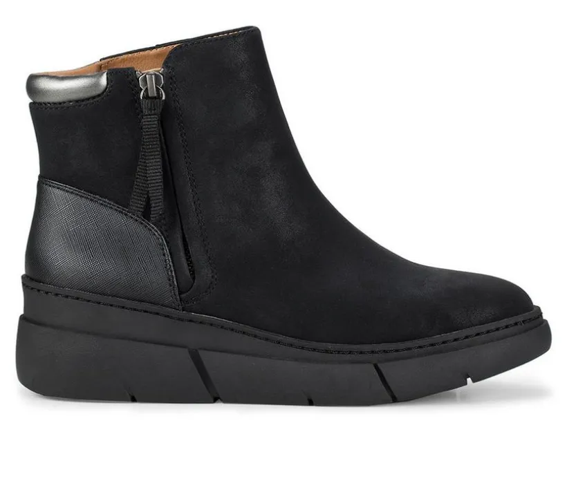Elevate your everyday with this stylish wedge boot designed to keep you looking sharp and feeling supported. The shimmering textured upper brings eye-catching appeal, while the low wedge heel gives just the right amount of lift without sacrificing stability. A side zipper allows for easy on and off, and the cushioned footbed makes these a go-to choice for all-day wear. With a sleek profile and subtle shine, this boot adds polish to any casual look.