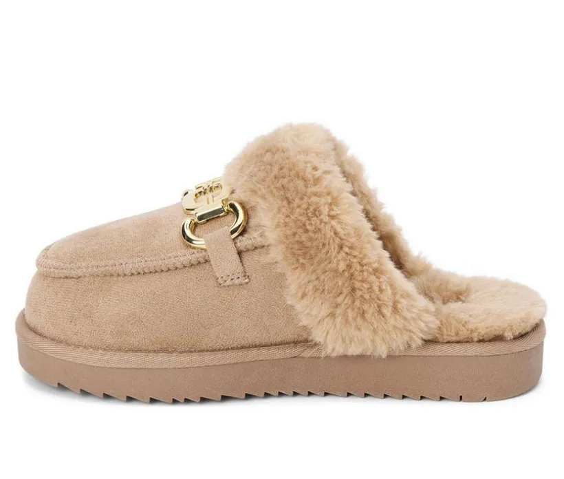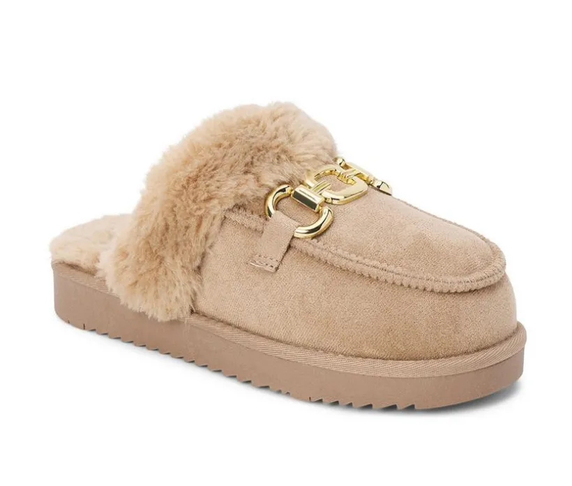 Stay cozy and chic with these lounge-ready vegan mules. Designed with a faux-fur lining for softness and warmth, they’re accented by a decorative ornament detail for added style. The slip-on construction makes them easy to wear indoors or out, keeping your look casual yet polished.