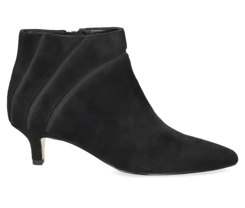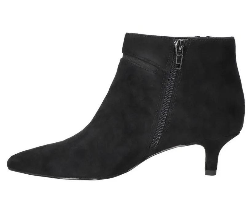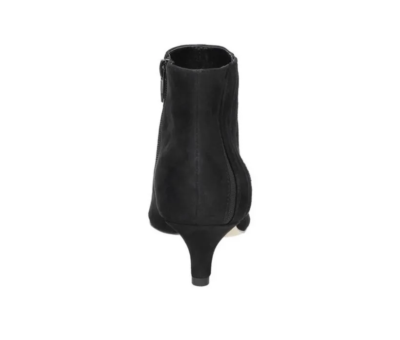 Find the perfect balance of simplicity and sophistication with the Faraday by Bella Vita contemporary leather dress shootie. Its pointed-toe design radiates timeless elegance, while the on-trend kitten heel brings a modern touch that is both practical and stylish. The padded insole provides added comfort, and the inside zipper offers an easy on/off. Elevate any dress outfit effortlessly with this boot.