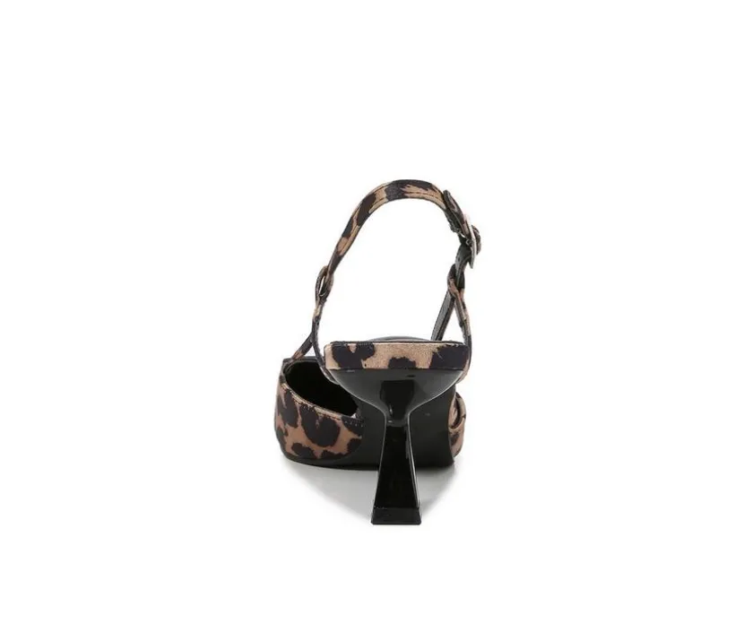 This pointed-toe slingback stands out with its T-strap design and oversized buckle embellishment. The flared mid-heel adds sculptural appeal, while the slingback strap provides a clean, feminine finish. From evening plans o polished workwear, this silhouette delivers elegance with a fashion-forward twist.