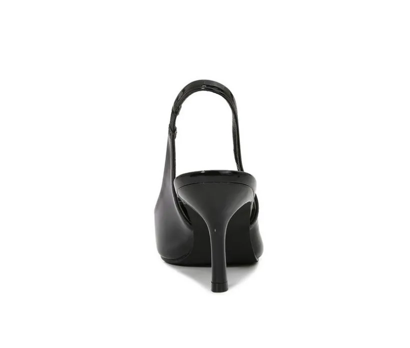 Refine your evening or office ensemble with these pointed-toe slingback heels, designed with sleek lines and timeless sophistication. A sculpted kitten heel adds just the right amount of lift, while the open back and tapered silhouette create an elegant, flattering profile. Whether styled with tailored looks or occasion wear, they deliver poised polish in every step.