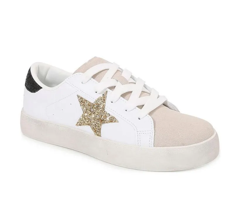 A playful low-top sneaker with bold detail and casual flair. Featuring a faux leather and suede upper with a contrast star accent, this lace-up style blends sporty attitude with a touch of street-inspired charm.