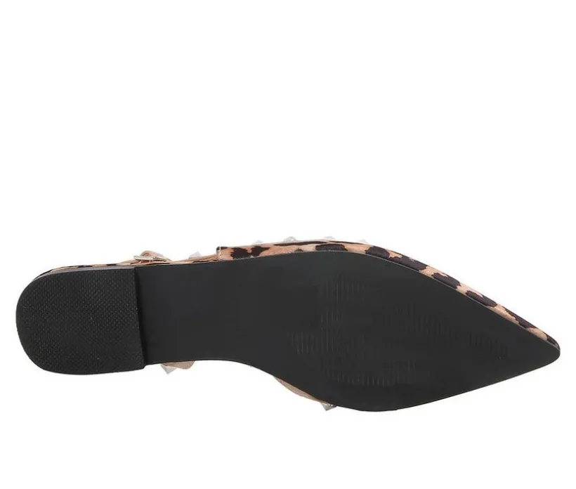 Sleek and striking, this pointed-toe flat adds edge to everyday wear with its polished shape and studded trim. The sharp silhouette is softened by the delicate slingback strap, while gleaming metal accents outline the topline for a bold touch. Perfect for when you want a flat that doesn’t fall flat on style.