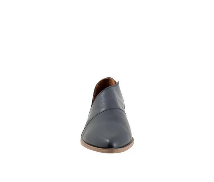 The Blake is a slip-on with an asymmetrical design and pointed toe. Elastic goring on the instep adds a comfort detail.