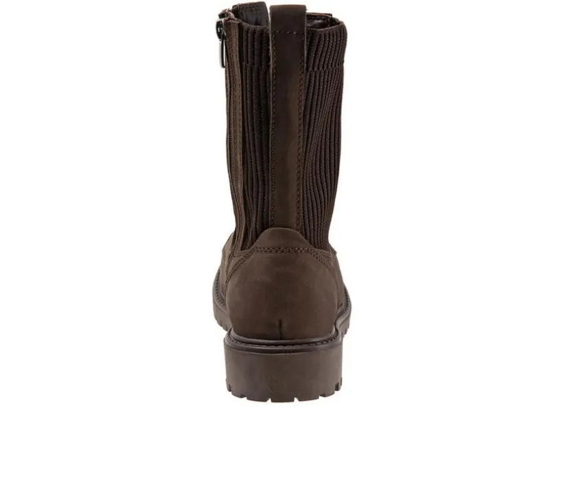 A monochromatic combat-inspired boot with built-in stretch for comfort. Ribbed elastic side panels flex with movement, while an inside zipper speeds up on/off. A cushioned insole softens steps, and the 1 1/2″ lift adds everyday height without overdoing it. A clean, calf-high profile finishes the look.