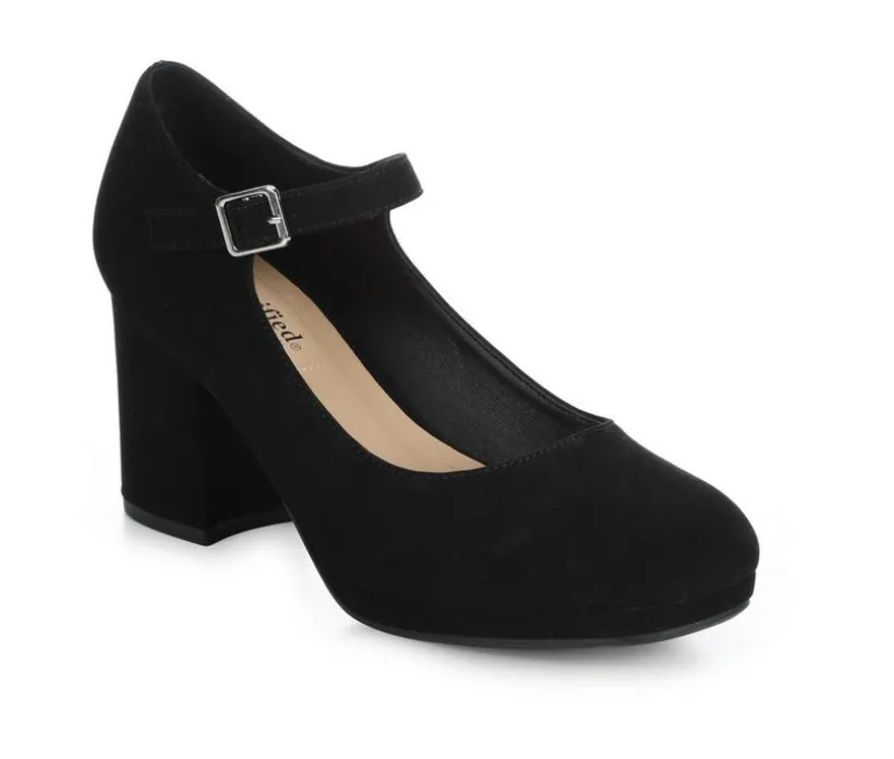 This classic Mary Jane pump brings timeless charm with a modern block heel that delivers comfort and stability. Featuring a soft nubuck-style finish and an adjustable strap, it’s an easy choice for dressed-up days, evenings out, and special occasions.