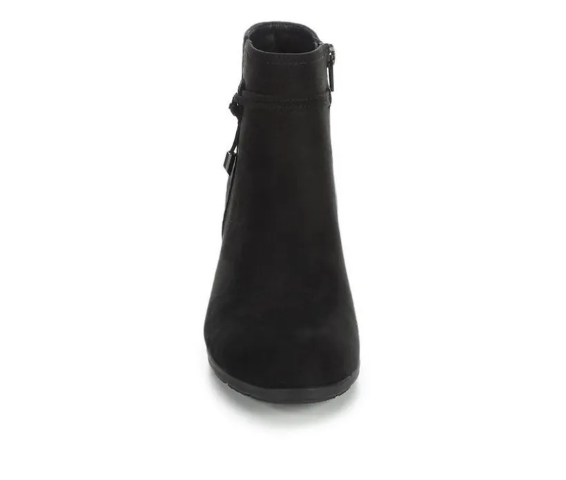 Step up your everyday style with the Women’s Cliffs by White Mountain Angelo Booties. Designed with a sleek suede-like finish, this ankle boot features a clean profile accented by a side zipper with metallic pull for easy wear. The mid-height block heel offers a flattering lift while keeping comfort in check, making them perfect for both work and weekends. Versatile and polished, these booties pair effortlessly with everything from denim to dresses.