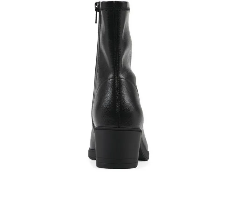 This block heel bootie blends modern polish with all-day comfort. The stretch upper provides a sleek fit, while the sturdy heel gives a confident lift. A side zipper ensures easy entry, and the cushioned insole supports you from office hours to evening outings. Its streamlined silhouette makes it a versatile staple for your footwear collection.