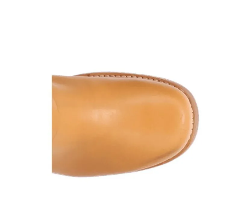 Built with a bold attitude and a touch of Western flair, this tall boot stands out with its rugged harness strap and stacked heel. Its sleek shaft and smooth upper give it a confident, no-fuss style that pairs easily with jeans, skirts, or cold-weather layers. Durable and stylish, it’s a go-to for seasonal outfits that need structure and edge.