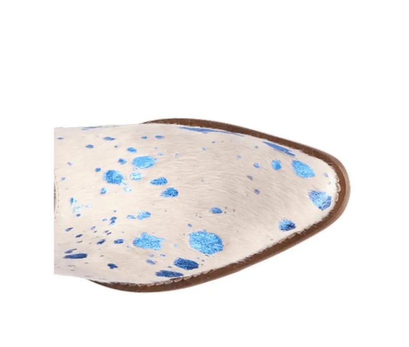 Channel western charm with a bold, artsy twist in these effortlessly stylish heeled mules. Designed with a statement-making haircalf-texture upper splattered in metallic or vivid paint-like details, this backless silhouette delivers elevated flair with every step. The easy slip-on design combines with a sturdy block heel to create the perfect mix of convenience and confidence. Whether you’re headed to a concert or downtown stroll, this mule keeps things fashionable and fun from day to night.